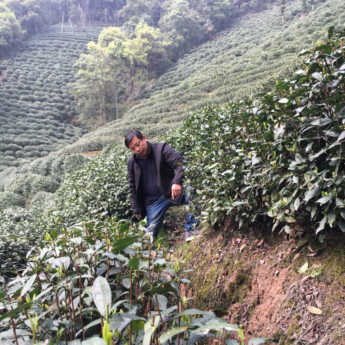 ‘Vertically challenged’ takes on a whole new meaning as I fought to remain standing vertically, not having slept properly for about 36 hours at this point, the sweet scent of mountain trees and tea bushes, the sound of melodic warbler birds echoing across the valley, tea pickers chatting happily, lulling me rapidly to sleep. In the meantime, Mr. Dai challenged me to distinguish between leaf buds from the original seeded bushes vs the ‘improved’ Dragonwell #43. It’s easy to differentiate between the round clumps of the thousand year old root stock of the original seed grown bushes, from the hedge like modern varietals. But on a leaf bud level, one has to pay careful attention. Mr. Wei says many tea masters have gotten confused and fired the wrong picking, the harvesters sometimes even make the mistake, and some devious producers make that mistake intentionally to blend the two together. But a discerning palate will be able to tell the much smoother mouthfeel and substantial complexity from the seed grown stock. The ‘improved’ version, very often, is not. I learned that the new # 43 was designed to flush earlier and create crops for the greedier patrons. Mother Nature has a way of applying some humility. This year, the sudden snow killed a lot of the early flush buds, leaving the seed grown plants to peacefully take its time.