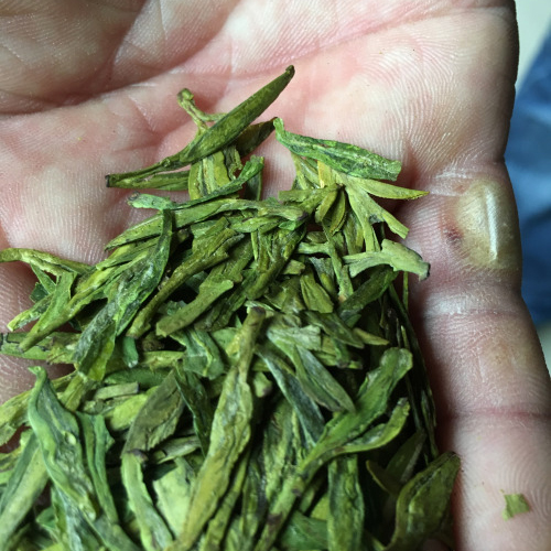 ‘Vertically challenged’ takes on a whole new meaning as I fought to remain standing vertically, not having slept properly for about 36 hours at this point, the sweet scent of mountain trees and tea bushes, the sound of melodic warbler birds echoing across the valley, tea pickers chatting happily, lulling me rapidly to sleep. In the meantime, Mr. Dai challenged me to distinguish between leaf buds from the original seeded bushes vs the ‘improved’ Dragonwell #43. It’s easy to differentiate between the round clumps of the thousand year old root stock of the original seed grown bushes, from the hedge like modern varietals. But on a leaf bud level, one has to pay careful attention. Mr. Wei says many tea masters have gotten confused and fired the wrong picking, the harvesters sometimes even make the mistake, and some devious producers make that mistake intentionally to blend the two together. But a discerning palate will be able to tell the much smoother mouthfeel and substantial complexity from the seed grown stock. The ‘improved’ version, very often, is not. I learned that the new # 43 was designed to flush earlier and create crops for the greedier patrons. Mother Nature has a way of applying some humility. This year, the sudden snow killed a lot of the early flush buds, leaving the seed grown plants to peacefully take its time.